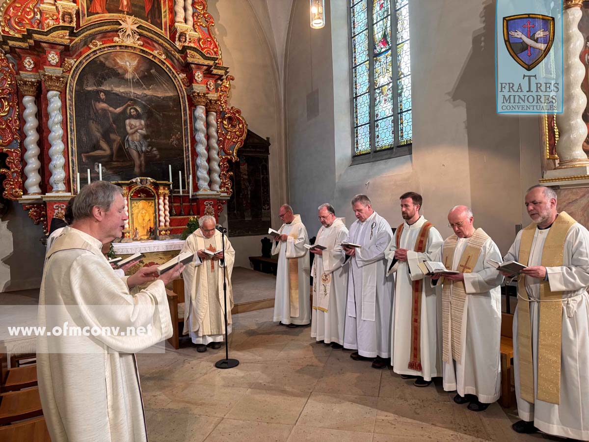 On April 28-30 , 2025, fourteen friars gathered at the Gekreuzigten Erlöser [Crucified Savior] Friary in Lage, Germany. The Province opened this presence in February of 2021, and the faithful there very much appreciate the friars for their pastoral work. The Guardian, Friar Maximilian M. BAUER, was very happy to host the visiting friars.