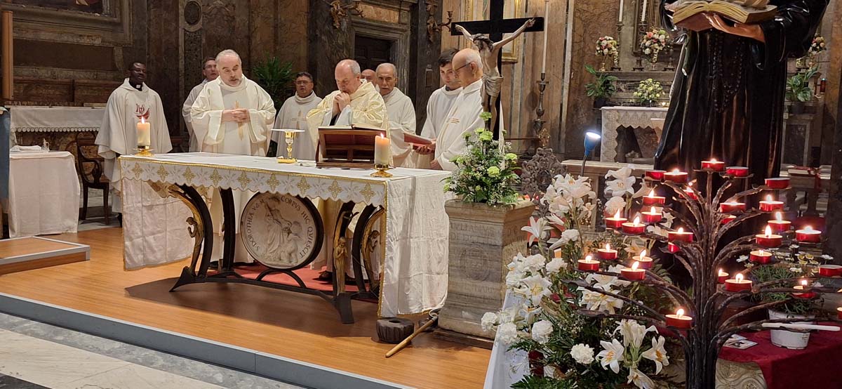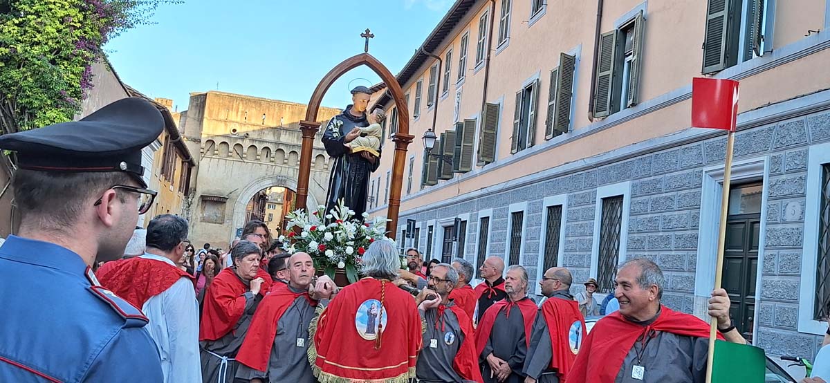 In 2024, there were two rounds of celebrations. The first took place on June 13, the liturgical feast day of St. Anthony of Padua. It was attended by many faithful and devotees, and was preceded by the pious exercise of the Tredicina devotion and the Triduum of St. Anthony, which was preached by Friar Aurelio ERCOLI of the community of the Twelve Holy Apostles in Rome. At 6:00 p.m., Friar Francesco LENTI, the Minister Provincial of the Italian Province of St. Francis of Assisi (Central Italy), presided over the solemn Mass. Friar Umberto FANFARILLO, the Pastor of Santa Dorotea and some friars from the San Giacomo Friary were present as well. Earlier that morning, the pastor had blessed baskets of “St. Anthony’s Bread” and distributed them to the local faithful.