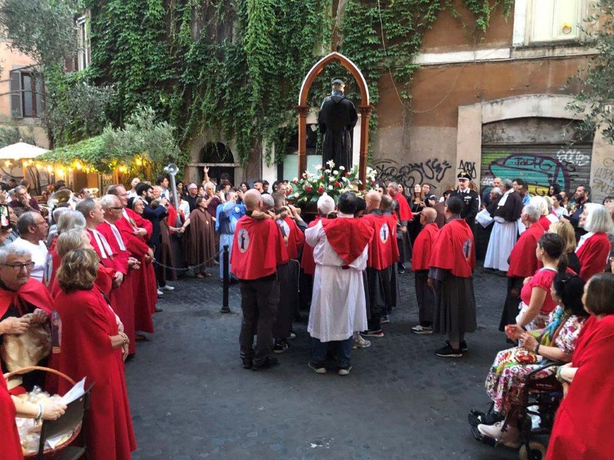 The procession returned to the parish late in the evening where it was welcomed by hundreds of devotees and many tourists from the populous Trastevere district.