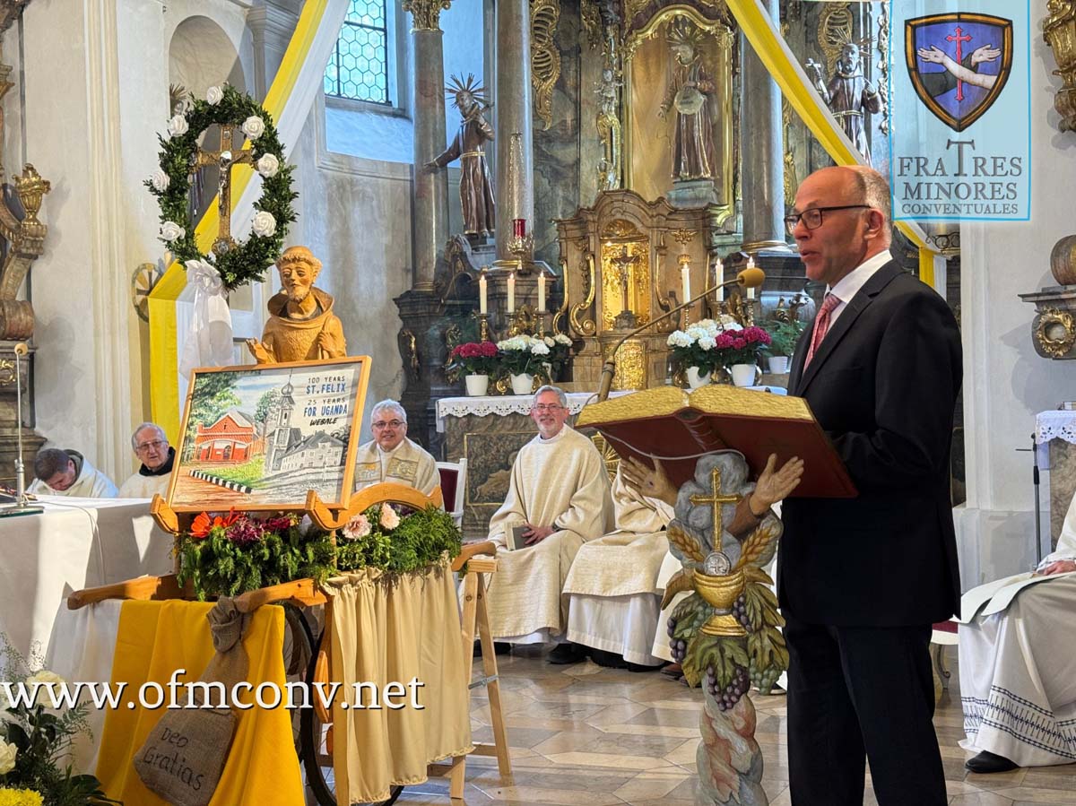 En su discurso, el Alcalde Sebastian GIERING destacó que el Convento de San Felice es un hogar espiritual para los habitantes de la ciudad. Expresó su gratitud por los muchos años de colaboración, la apertura de los Hermanos y las iniciativas conjuntas que enriquecen la vida de la comunidad local.
