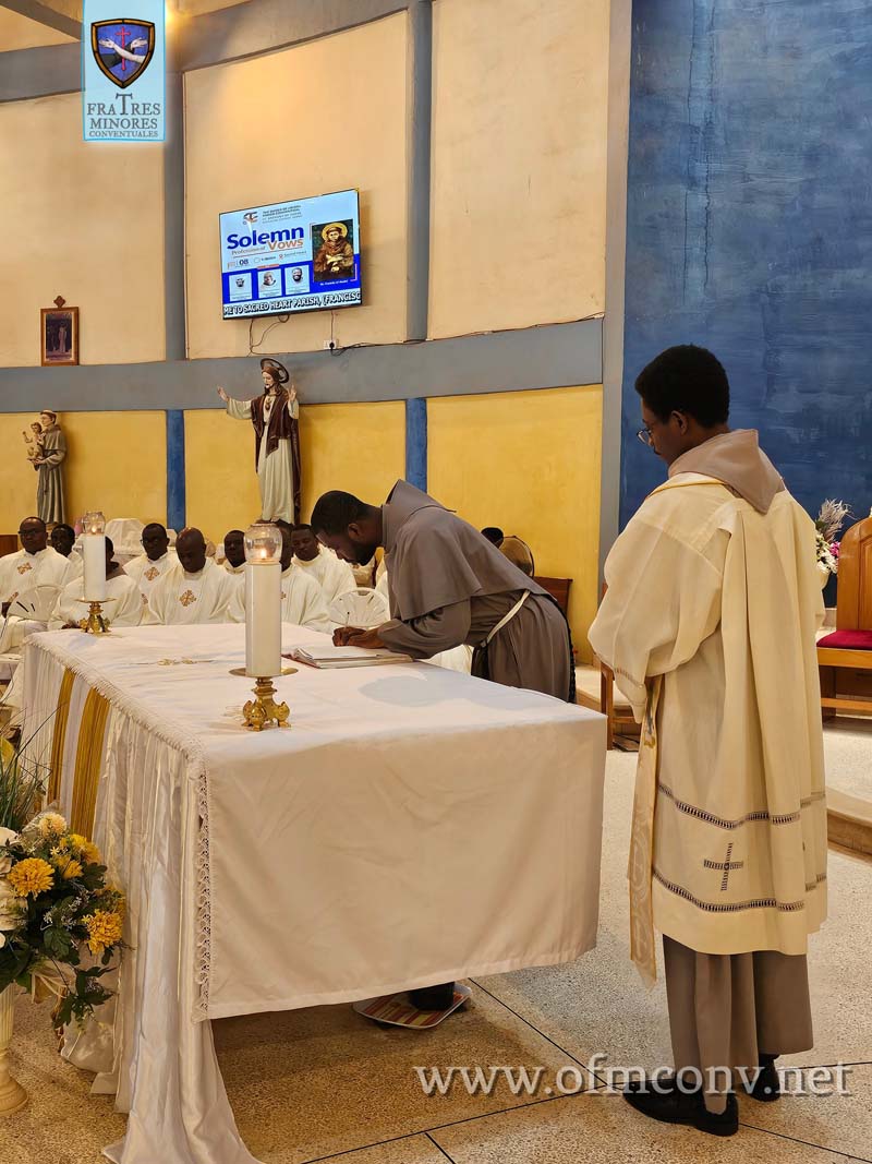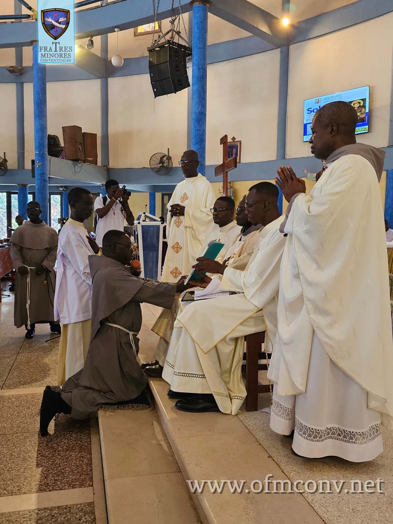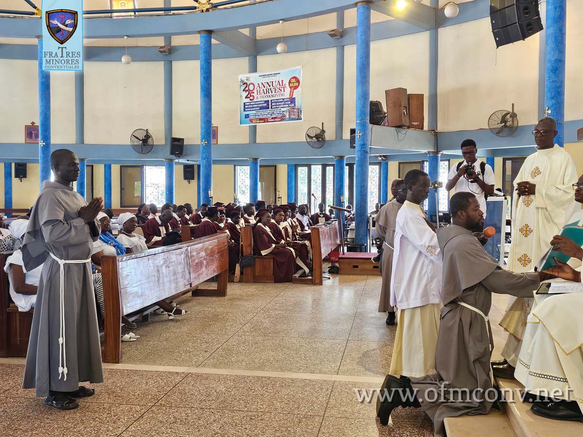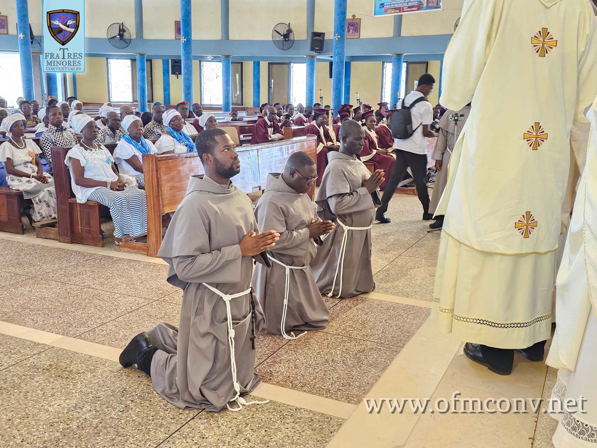 El Custodio provincial, Fray Vitus Edem Yao MENSAH, recibió los votos y presidió la Eucaristía, acompañado del párroco, Fray Stephen Oscar AMO, así como de Hermanos de diversas comunidades, sacerdotes, religiosos y religiosas, familiares, amigos, feligreses y personas de buena voluntad. Aunque algunos Hermanos no pudieron estar presentes físicamente debido a problemas de salud u otras circunstancias, su presencia espiritual se sintió en medio de todos.