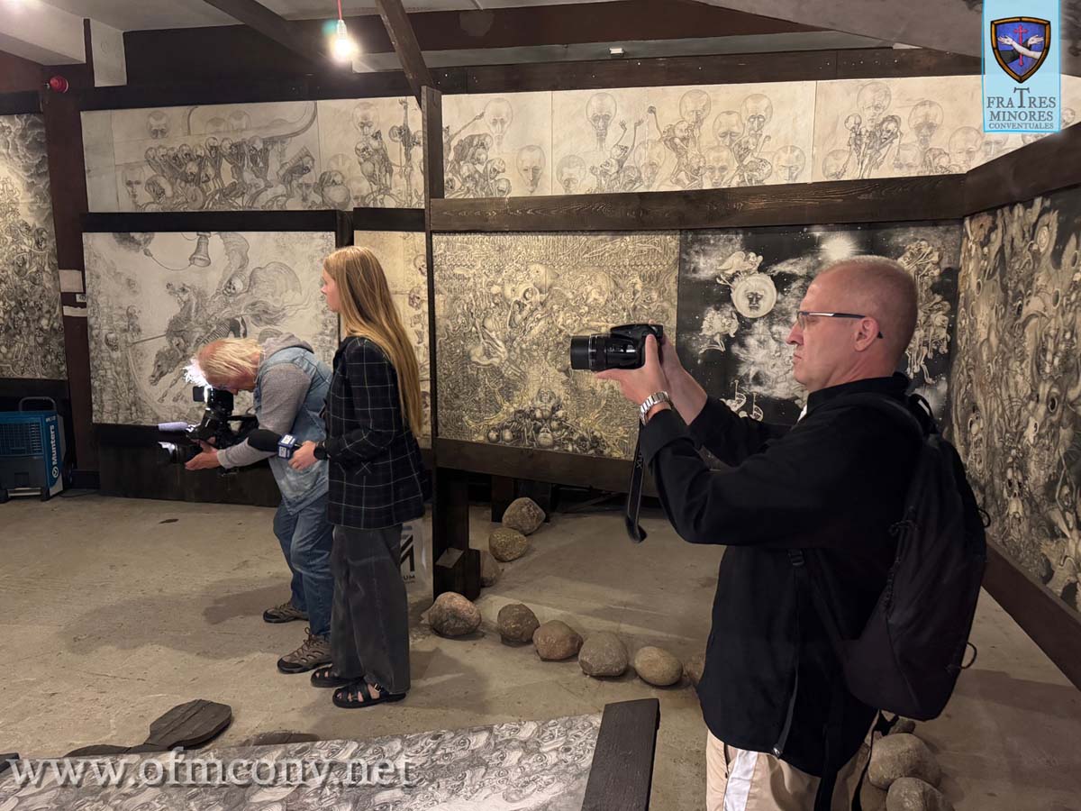 Los Hermanos franciscanos mostraron además a los invitados tres tesoros conservados en el Santuario y narraron su historia: el cuadro de la Inmaculada en el altar mayor, ante el cual San Maximiliano hizo voto a María en Leópolis de luchar por Ella; la estatuilla de la Virgen tras los alambres de púas, realizada por el ex prisionero Bolesław KUPIEC (prisionero número 792); y la exposición Huellas de la memoria. Laberintos, del ex prisionero del primer transporte a Auschwitz, Marian KOŁODZIEJ (prisionero número 432).