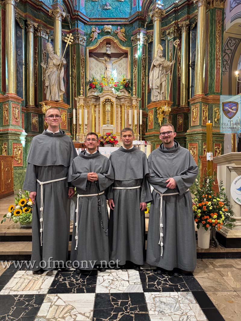 La Familia franciscana se ha enriquecido con cuatro nuevos Hermanos pertenecientes a la Provincia de San Antonio y del Beato Jacobo de Strepa en Polonia (Cracovia). Tras un año de postulantado y un año de noviciado, el domingo 21 de septiembre de 2025, en el Santuario de Kalwaria Pacławska, Fray Tomasz BULDA, Fray Tomasz KANIEWSKI, Fray Michał GRYNIUK y Fray Michał ROMANIUK emitieron sus primeros votos religiosos. Se comprometieron públicamente a vivir en obediencia, sin nada propio y en castidad por un año.