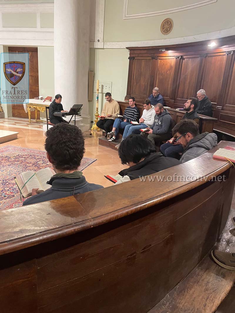W następnych dniach odwiedził nowicjat FIMP w Asyżu. Wspólnota ta również rozpoczęła nowy rok z nową ekipą formacyjną, w której skład wchodzą: mistrz fr. Federico SANTOLIN z prowincji Włoch Północnych i wicemagister fr. Jonathan MUTUO z kustodii w Ghanie. Zróżnicowane jest też pochodzenie 15 nowicjuszy: 4 z kustodii we Francji i Belgii, 1 z kustodii generalnej w Asyżu, 2 z prowincji we Włoszech Północnych, 2 z prowincji we Włoszech Środkowych, 1 z prowincji w Abruzji-Molise-Apulii, 2 z prowincji włoskiej Niepokalanego Poczęcia (Kalabria i Sycylia) i 3 z prowincji św. Hieronima w Chorwacji. Wizytator przeprowadził rozmowę z fr. Francesco SCIALPI, który jest odpowiedzialny za formację początkową w kustodii asyskiej. Jeśli chodzi o formację ustawiczną, kontaktował się z kustoszem fr. Marco MORONIM, a także z dwoma gwardianami, którzy obecnie koordynują dwie stałe placówki formacyjne w kustodii: fr. Emanuele RIMOLI we „Franciscanum” i fr. Lindor Alcides TOFFUL w Rivotorto. Dyskutował z nimi na temat tego, jak skonkretyzować i wprowadzić w życie uchwałę 5 niedawnej kapituły generalnej zwyczajnej.