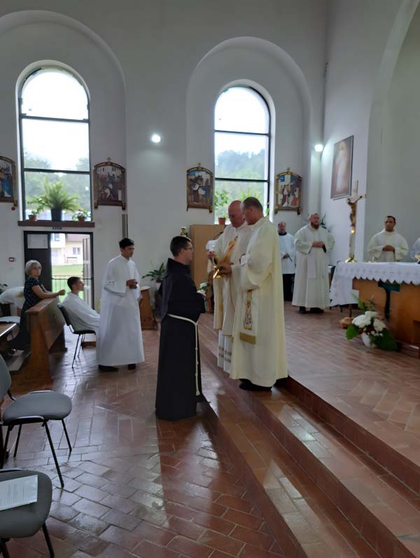 Come previsto da tempo, i fedeli sono arrivati da diverse parti della Romania, come anche i suoi famigliari e per l’evento anche diversi confratelli. La Santa Messa è iniziata puntualmente alle ore 11.00 ed è stata presieduta dal Ministro provinciale Fra Damian-Gheorghe PĂTRAȘCU. Nella sua omelia ha spiegato perché la chiamata non è un caso e neanche anonima, ma è per nome come per il profeta Samuele, ed è gratuita da parte di Dio. Anche la scelta non è generica ma per una missione ben precisa, per vivere nella fraternita e nella Chiesa il Santo Vangelo. Tutto questo si può concretizzare se è vissuto con amore per il Signore Gesù Cristo e per i più poveri, come ha vissuto San Francesco nostro serafico padre.